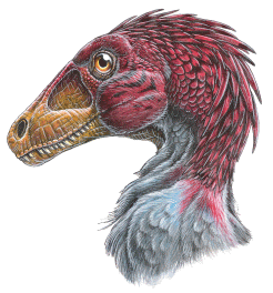 ¿Con plumas? Los raptores como el Atrociraptor son considerados los parientes no aviarios más cercanos a Archaeopteryx, un dinosaurio emplumado con caracteres tanto de reptil como de ave. Aunque no se han preservado plumas de dinosaurios en Norteamérica, muchas de las especies del Cretácico Tardío halladas allí están relacionadas con los dinosaurios con plumas encontradas en China. Por eso, muchos científicos piensan que los terópodos de esta época pueden haber tenido plumas, entre ellos Atrociraptor.